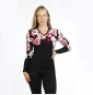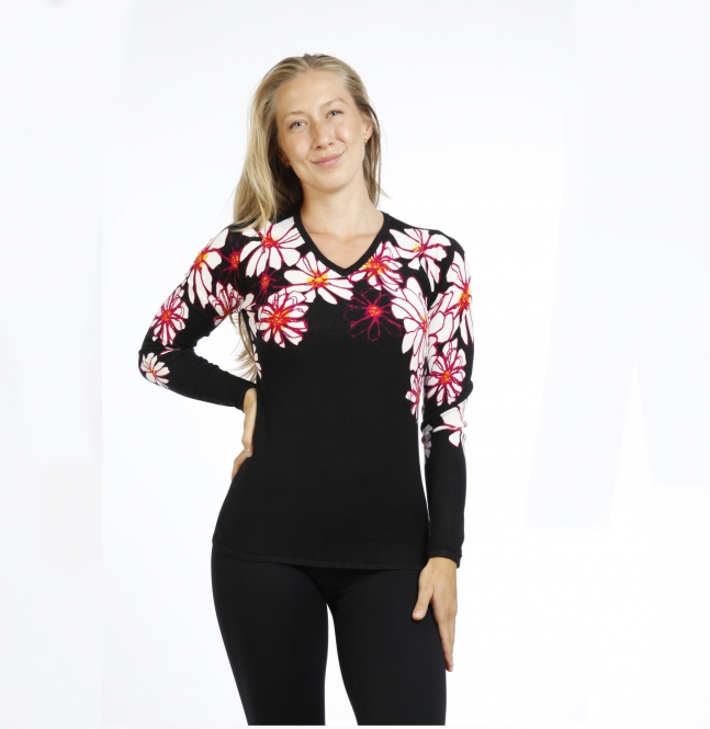 mit schwarzem Tubular am Hals, V-Ausschnitt mit 1/1 Arm, 80%Viskose, 17% Polyamid, 6%Elasthan