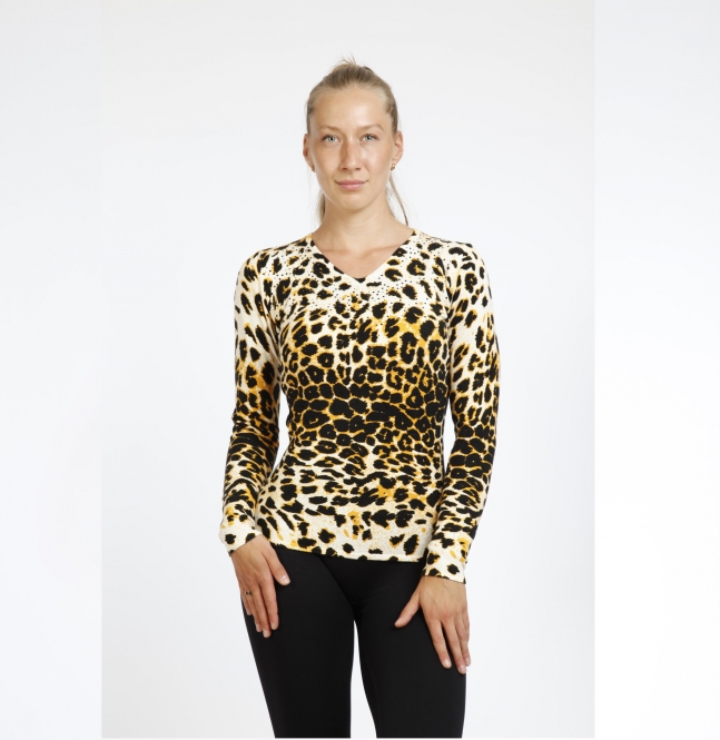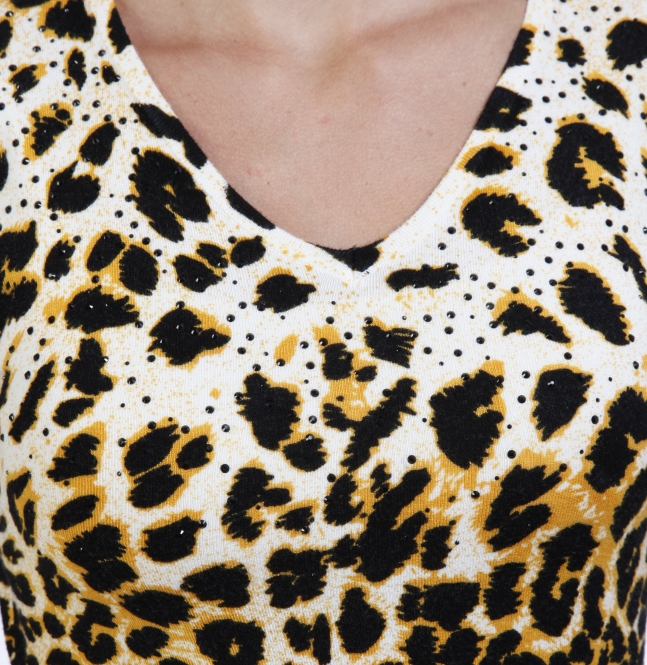 mit Bestickung, V-Ausschnitt mit 1/1 Arm, 80%Viskose, 17% Polyamid, 6%Elasthan
