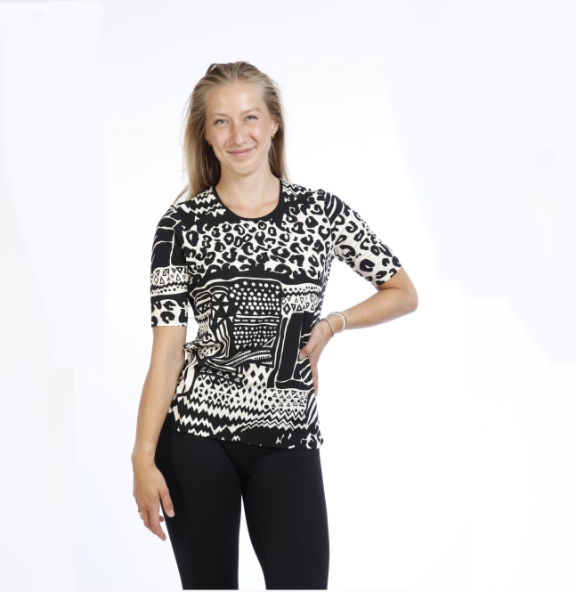 Rundhalsausschnitt mit 1/2 Arm, 94%Viskose, 6%Elasthan